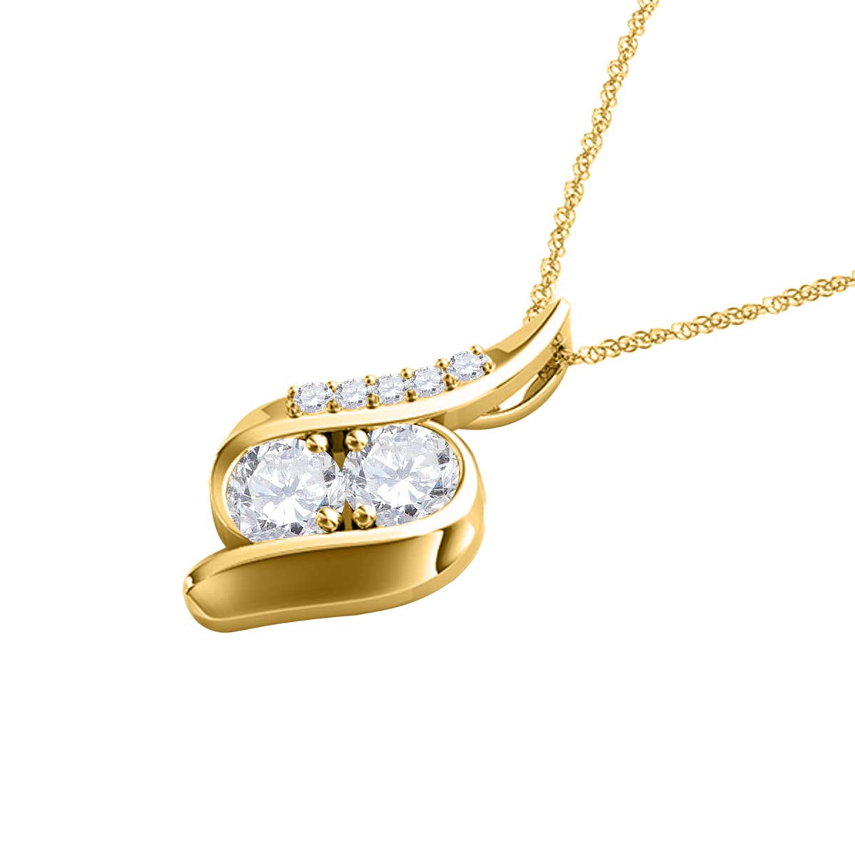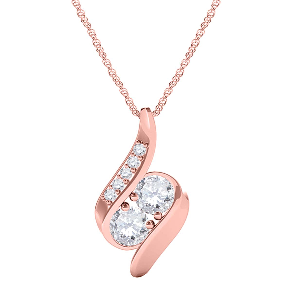 MauliJewels 0.25 Ct Lab Created Two Stone Diamond Pendant Necklace for Women in 10K Rose, White & Yellow Gold with 18" Silver Chain | Antique Style Engagement & Wedding Jewelry Gift