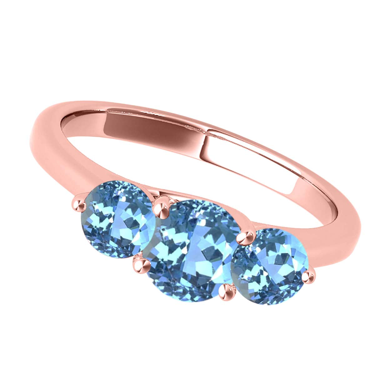 MauliJewels 2.25 Carat Three Stone Blue Topaz Engagement Ring for Women – 10K Rose, White & Yellow Gold | Round Cut Blue Topaz Wedding Ring | Elegant 3-Stone Design Jewelry Gift