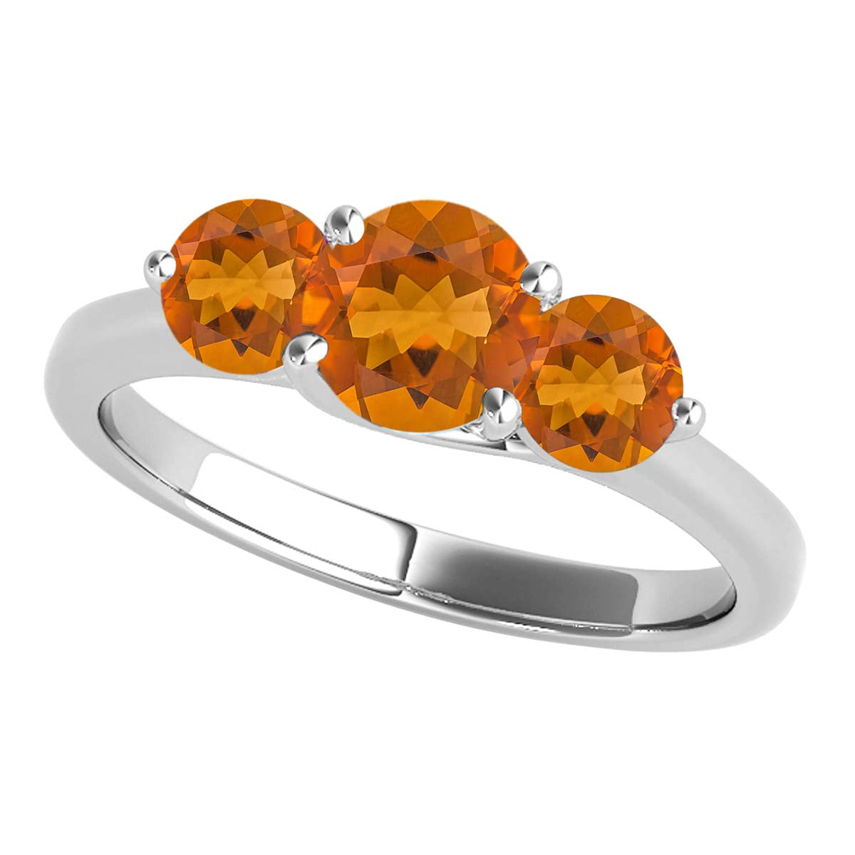 MauliJewels 2.25 Carat Three Stone Citrine Engagement Ring for Women – 10K Rose, White & Yellow Gold | Round Cut Citrine Wedding Ring | Elegant 3-Stone Design Jewelry Gift