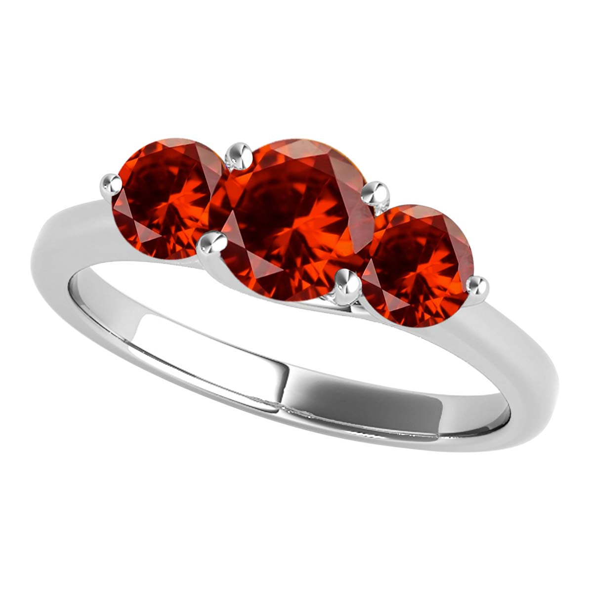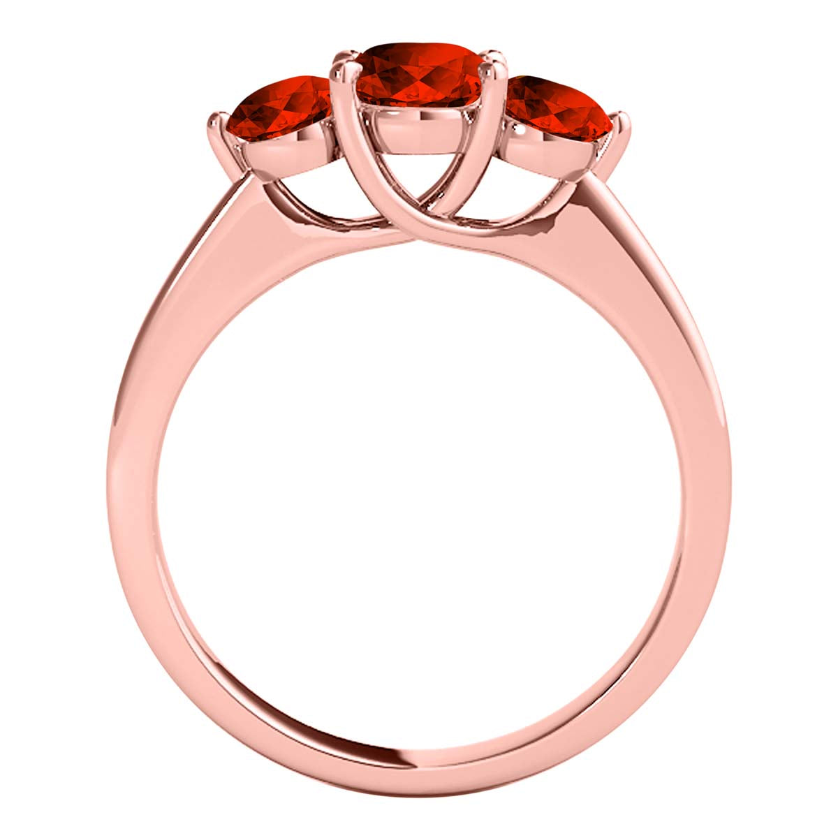 MauliJewels 2.25 Carat Three Stone Garnet Engagement Ring for Women – 10K Rose, White & Yellow Gold | Round Cut Garnet Wedding Ring | Elegant 3-Stone Design Jewelry Gift