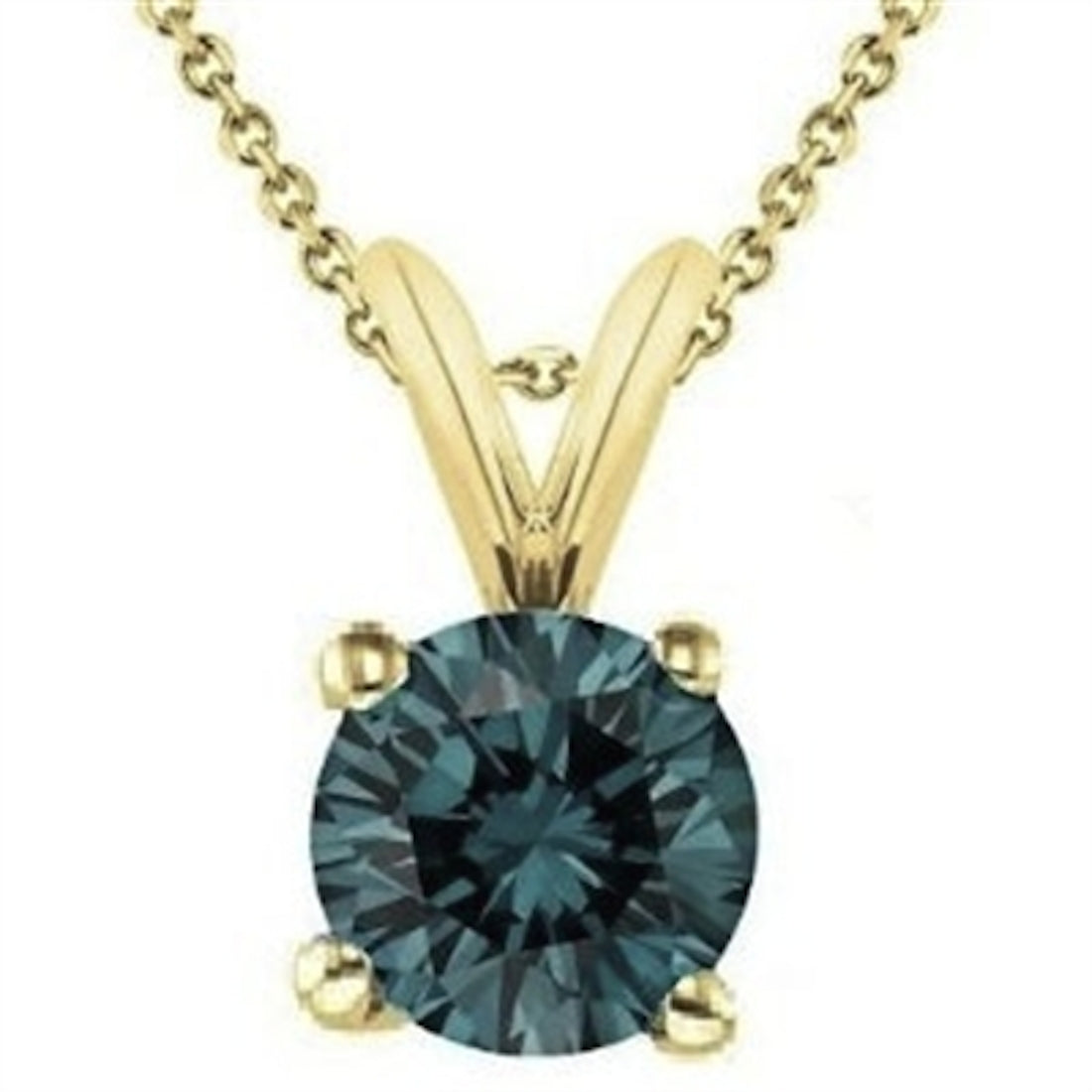 MauliJewels Engagement Necklace Women 1.00 Carat Round Blue Diamond Solitaire Pendant, 4-Prong 14K White Gold